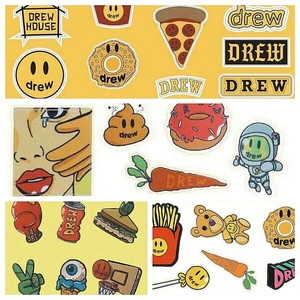 Drew House Logo House,drew teddy shark funny sticker. Drew house collection by justin bieber 2019. Drew yellow house, drew stickers original drew sticker. Drew house hoodie for men.